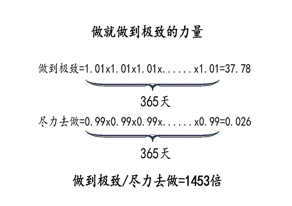 我們倡導(dǎo)員工做任何一件工作,“做,就做到極致”,把事情做細(xì)、做專、做到極致,永遠(yuǎn)以積極的思維方式,滿懷熱情,付出不亞于任何人的努力,把自己的潛能發(fā)揮到極致,人生一定會(huì)碩果累累、幸福美滿。