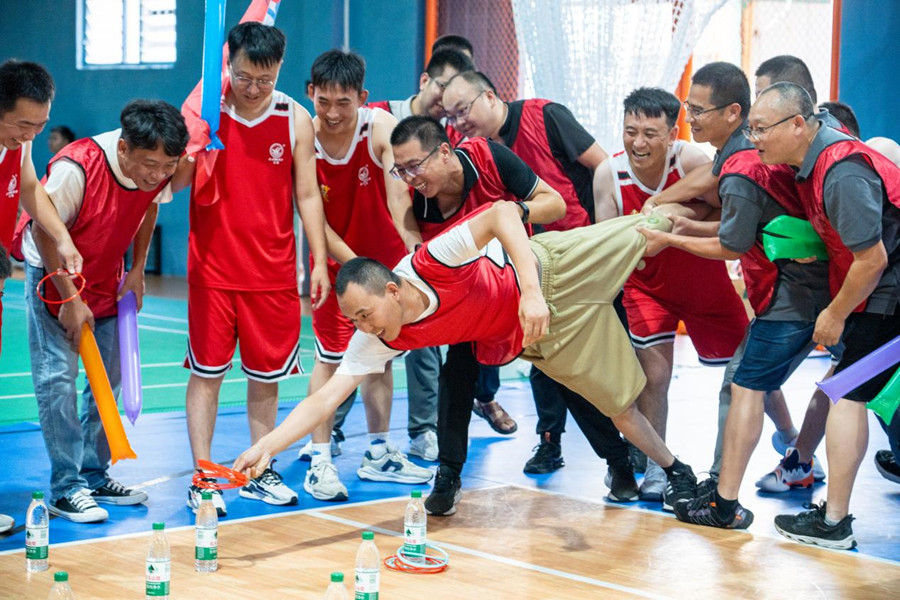 活動伊始,為了幫助大家充分熱身,調(diào)動起積極性,團(tuán)隊精心設(shè)計了一系列有趣的熱身游戲?!疤兹Α庇螒蛑校蠹壹娂娛┱棺约旱募记?,試圖將手中的圈圈套中目標(biāo),現(xiàn)場歡聲笑語不斷?!捌姹鴬Z寶”游戲則考驗了大家的觀察力和團(tuán)隊協(xié)作能力,隊員們在規(guī)定時間內(nèi)迅速找到指定物品,展現(xiàn)出了高效的團(tuán)隊配合。而一分球和三分球投籃比賽,更是讓大家提前感受到了籃球的魅力和競技的氛圍,不少員工都展現(xiàn)出色的投籃技巧,贏得了陣陣掌聲。